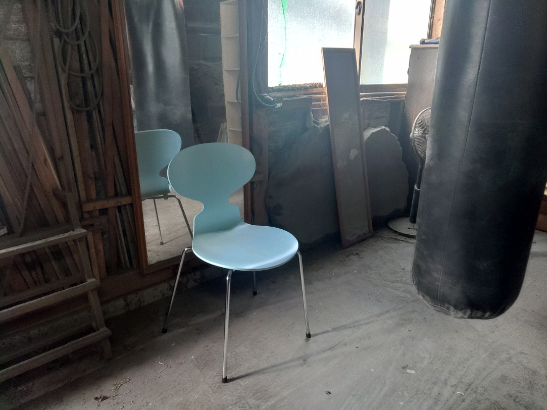 美しいアイスブルーという色のアントチェアでした。