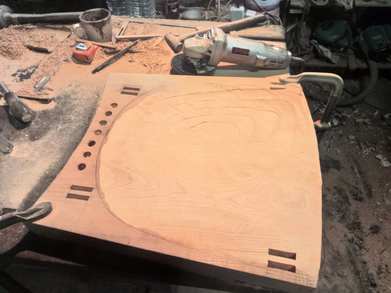 最後に四方反りカンナで整えつつ、カンナの刃の跡で手作り感を付け足します。機械に負けないための小さな抵抗です。