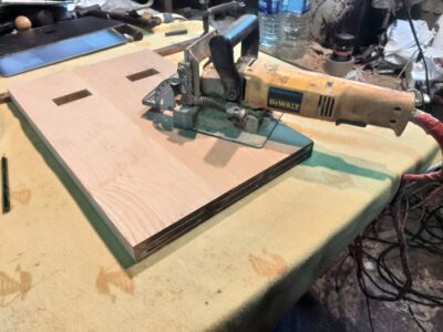 アメリカのDeWALT社製ビスケットジョイナーで穴を開けてビスケットで接合します。