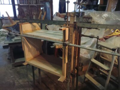 今回は天板との接合部は特に強度を出すために(天板が反ってしまわないように)2重にしました。