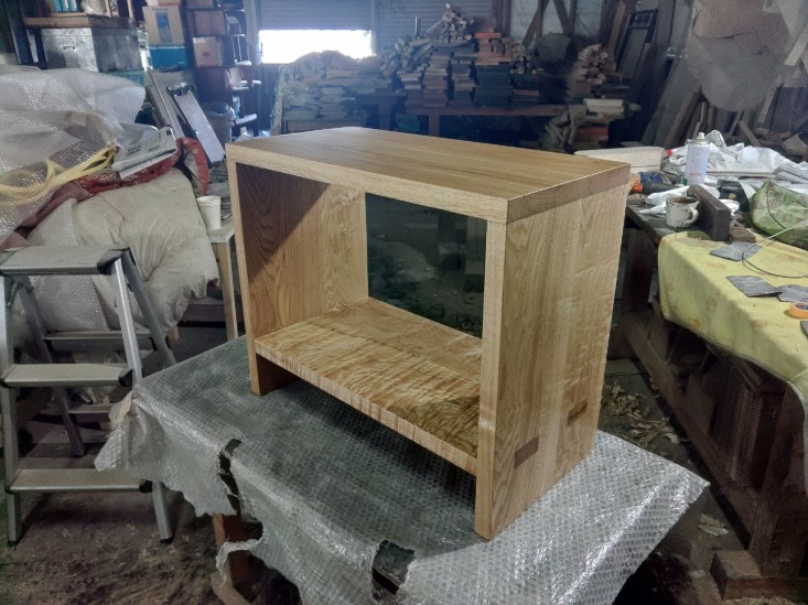 特注品のオークのTVボードを作っていました。