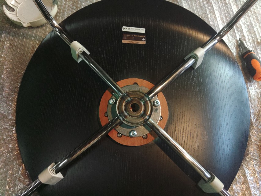 配送業者はこちらは指定はございませんので、お客様のご都合の良い配送業者をお選び頂き、座面と脚を外して一緒に梱包してお送りください。中途半端にくっついてる場合など配送料が高くなりますので安くしたい場合はプラスチックカバーを外して3つのネジを外して分離させて下さい。ネジが星形で回せない場合は真ん中の小さなネジを外してボンドでくっついてる部分を強引に外して下さい。